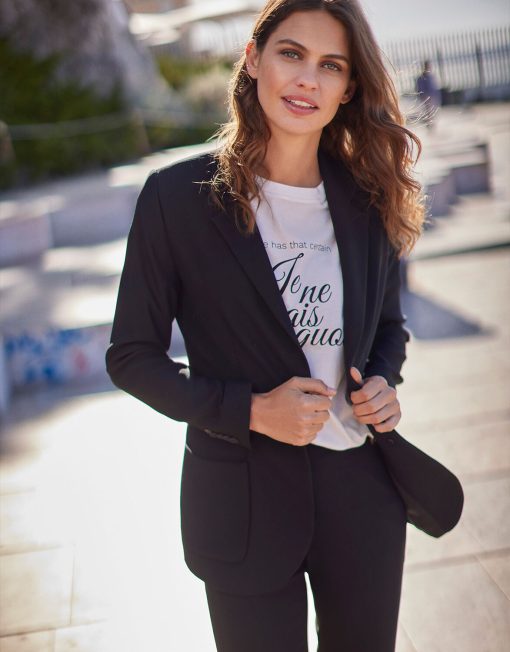 Carey is our bestselling blazer. Combine her with one of our pants for the perfect suit. She also looks great with one of our tops, skirts or dresses. A classic blazer like Carey is a true investment piece! Note: this delicate fabric requires careful handling, avoid contact with rough or sharp objects to prevent damage.