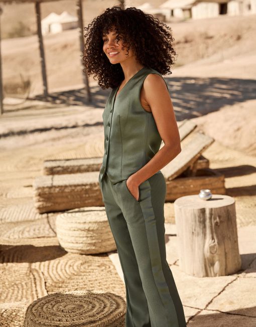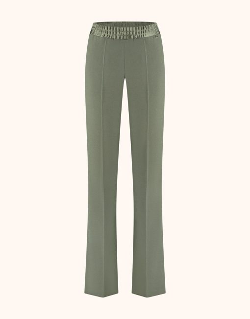 These straight-leg pants will effortlessly take you from desk to dinner. Porto is made of a smooth crêpe satin fabric, detailed with satin accents and an elastic waistband. Complete your look with one of our matching blouses, tops and/or blazers. The styling possibilities are endless. Note: this delicate fabric requires careful handling, avoid contact with rough or sharp objects to prevent damage.